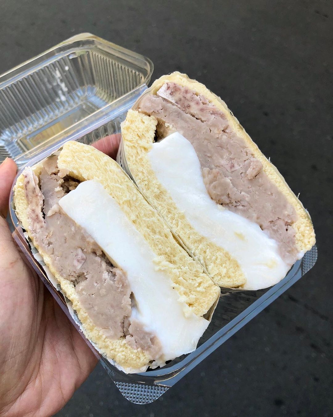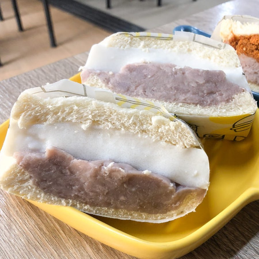 ▼首先小編就要先來介紹這款招牌的「芋見奶酪$65」,看看這一層厚厚的奶酪就知道老闆真的沒在手軟,而這款吐司因為加了濃郁又充滿奶香味的奶酪,因此整體吃起來冰冰涼涼,搭配飽滿紮實的芋泥不會過於甜膩,芋頭控一定會愛~