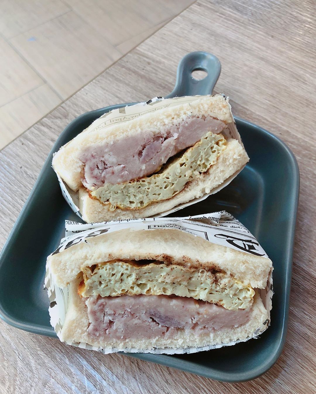 ▼另外,喜歡鹹食的朋友可以選擇這款「芋見厚蛋$60」,吐司裡同樣也夾著綿密又扎實的芋泥,入口後還能吃到芋頭顆粒,用料相當實在~接著加上煎到香香嫩嫩的厚蛋與胡椒粉提味,鹹鹹甜甜的口感真的超級涮嘴,瞬間就可以把一整份嗑完啊!