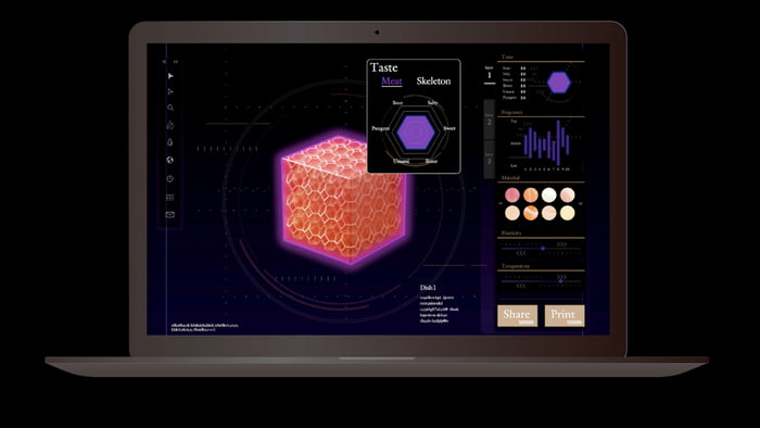 ▼「Sushi Singularity」會透過電腦系統分析樣本,根據客人的營養需求在3D列印壽司中加入適當的營養成分,為客人製作獨一無二的專屬壽司。