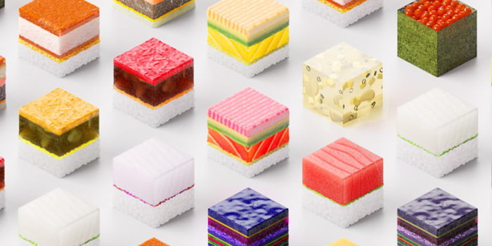 ▼其實早在2018年時,Open Meals就曾開展「Sushi Teleportation」企劃,用3D列印技術製作「8-bit圖」壽司。
