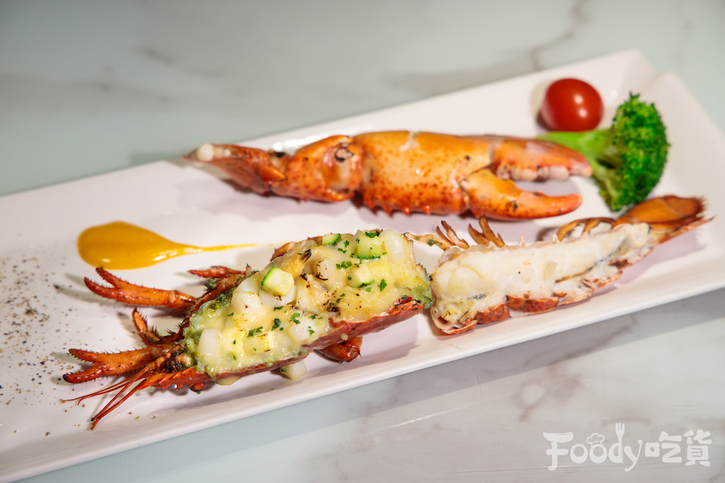 ▼前主餐直接端上超豪華「波士頓龍蝦」做成龍蝦兩吃,蝦頭以櫛瓜、起司與海鮮醬烹煮,海鮮香氣、濃郁起司與櫛瓜的水嫩口感相搭配;蝦尾與螯則以最簡單的乾煎方式烹調,能嚐到龍蝦最原始的海味鮮甜,龍蝦肉彈牙美味,令人意猶未盡。