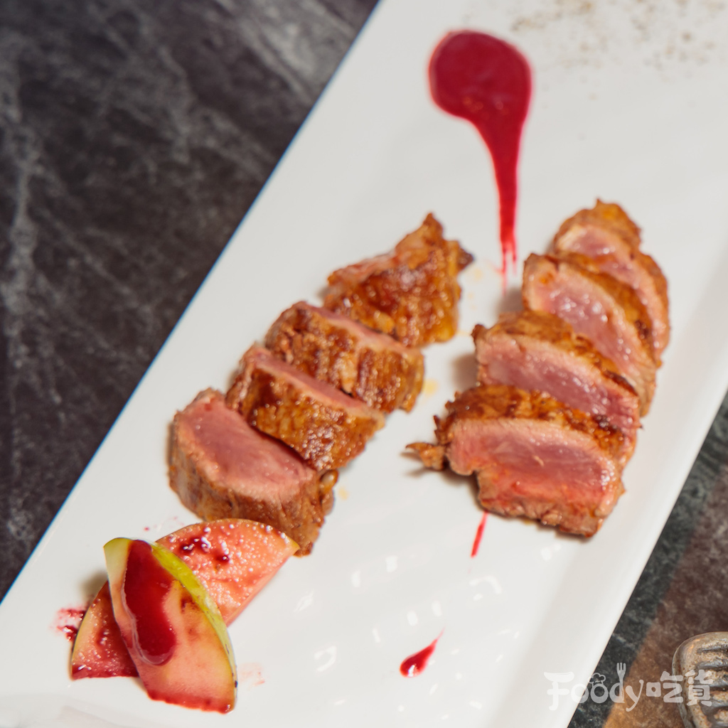 ▼不吃牛的人,則可選擇「熱戀伊比利豬」,以莓果果醬濃縮熬製、煮出甜味,結合香氣四溢的伊比利豬入口彈牙又多汁,在酸香甘甜的醬汁中更能凸顯出豬肉本身的鮮甜滋味。