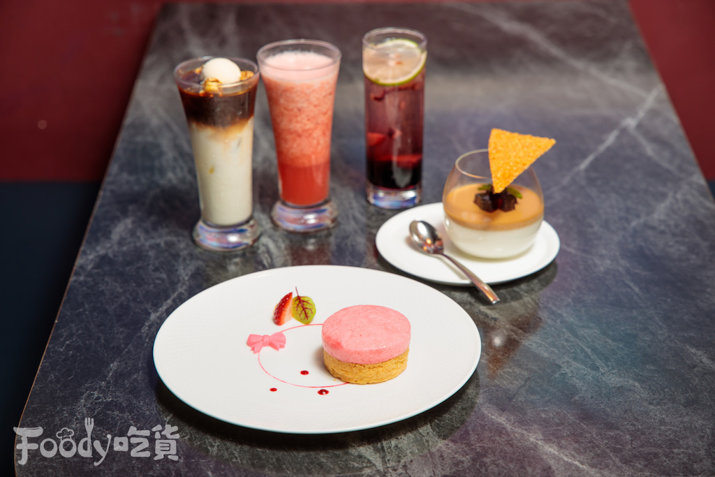 ▼七夕情人節當然也不能缺少了甜點一起慶祝,吃完鹹的,服務人員會貼心帶你轉換場地,到燈光美氣氛佳的沙發區享用甜點飲品。甜點可選擇粉紅泡泡愛戀塔,或是楓糖摩卡奶酪,飲品則有接骨木葡萄氣泡飲、白朗峰伯爵奶茶、仲夏鮮果交響曲等,每一道、每一杯都是高顏值又療癒,最適合帶另一半來享用,慶祝這特別的節日。