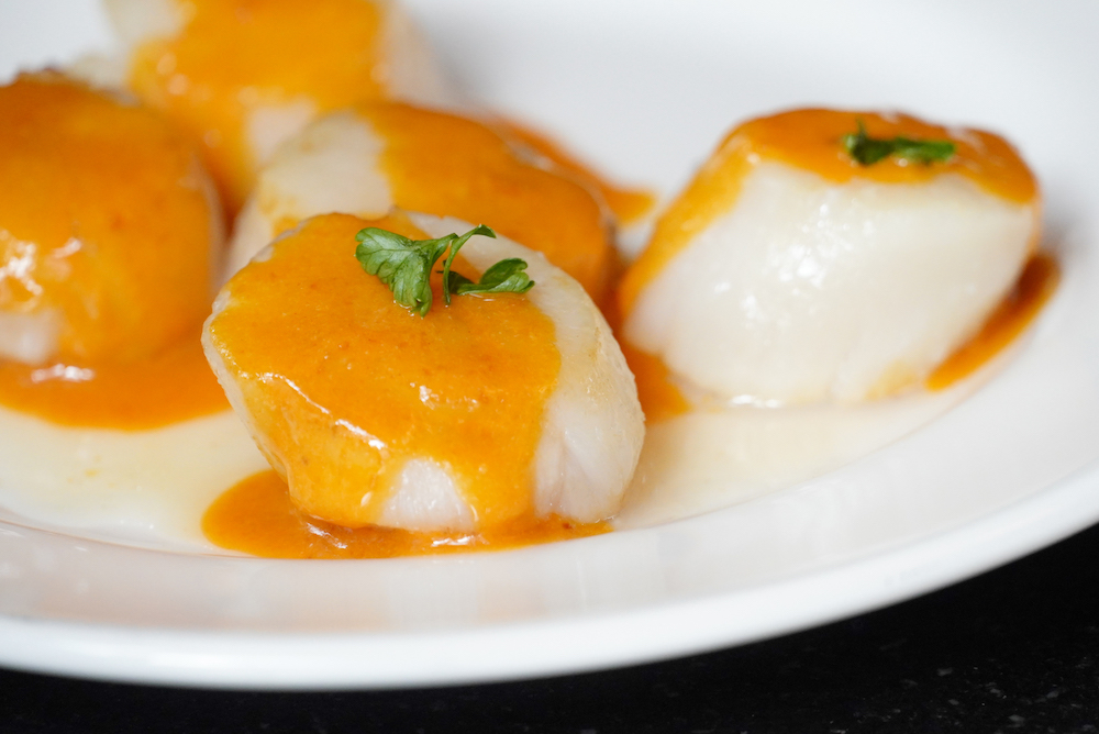 ▼日本北海道空運來台的生食級大干貝,顆顆飽滿肥碩又彈牙,經高溫爐火致考到表面呈現微微金黃色澤,將海味精華鎖在貝肉中,鮮甜滋味展露無遺;搭配哞哞屋鹹蛋黃調製的「流芯金沙醬」,醬汁牢牢扒附著絲絲干貝肉,入口同時感受到海味與鹹蛋黃的濃郁風味,滑嫩干貝和金沙醬細沙口感結合,厚實豐富又滿足。