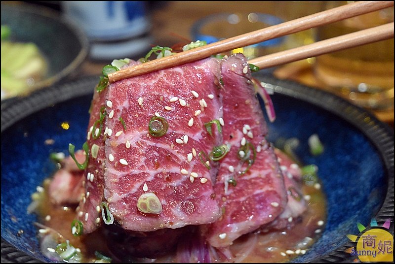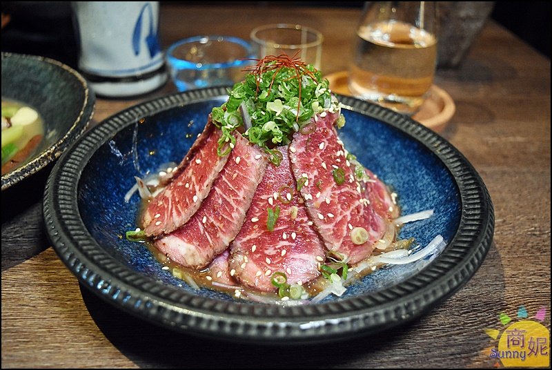 ▼另外,喜歡吃生食的朋友們可以嘗試這道「生牛肉」,以油花分佈均勻的板腱肉製作,口感多汁又嫩,再搭上洋蔥與和風胡麻醬的滋味,清爽又甘甜的滋味讓人一吃就愛上!