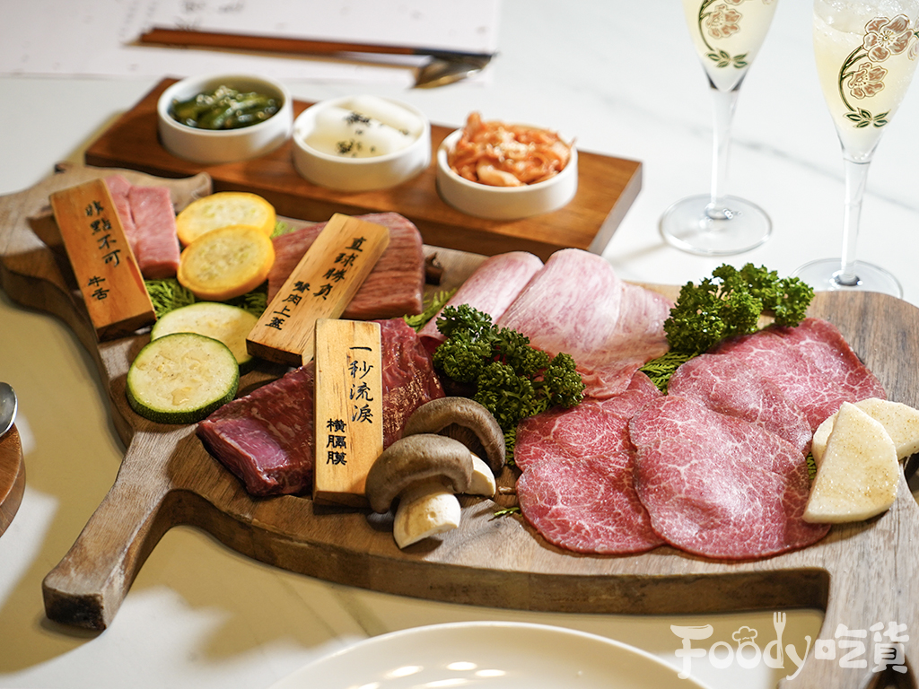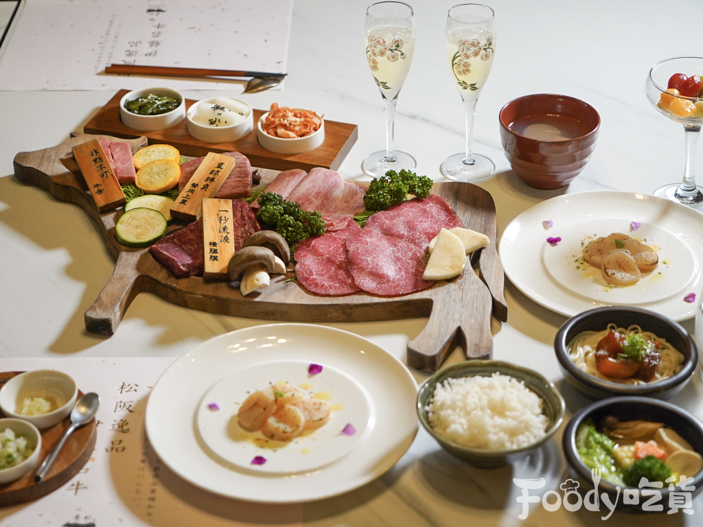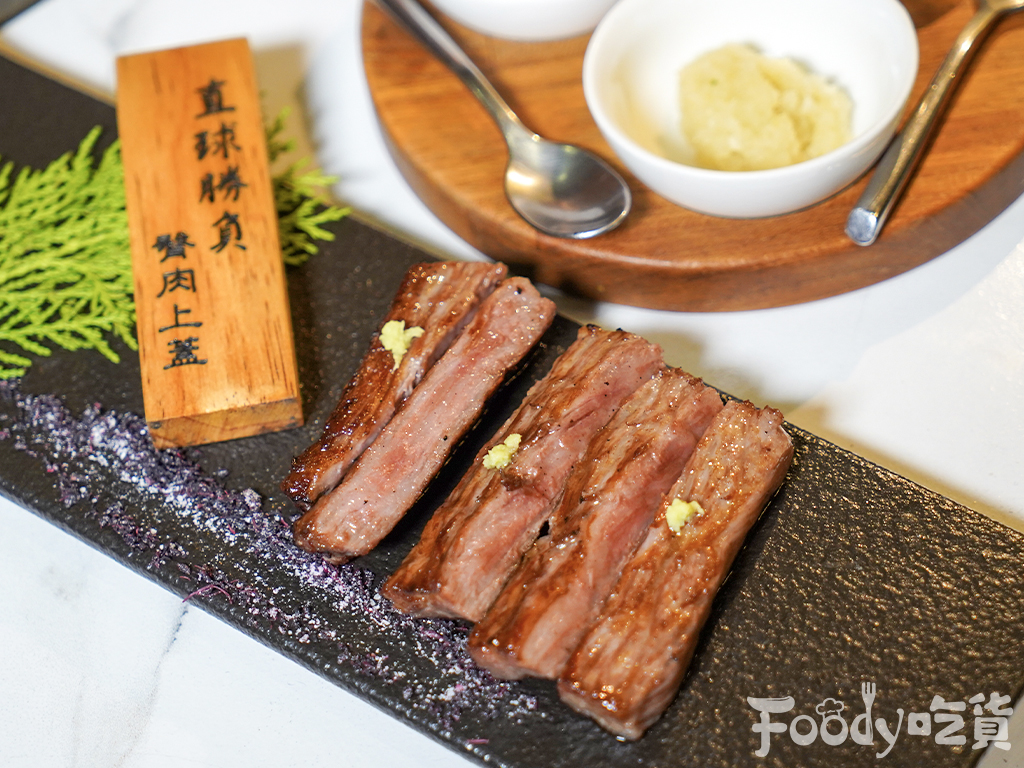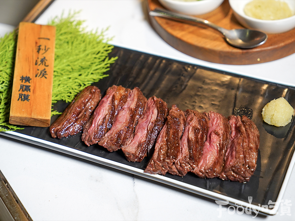 ▼澳洲9+和牛橫膈膜以厚切牛排方式呈現,碳烤後柔嫩多汁,風味濃郁;日本第一松阪伊藤A5和牛姿切,柔嫩化口,香氣宜人~