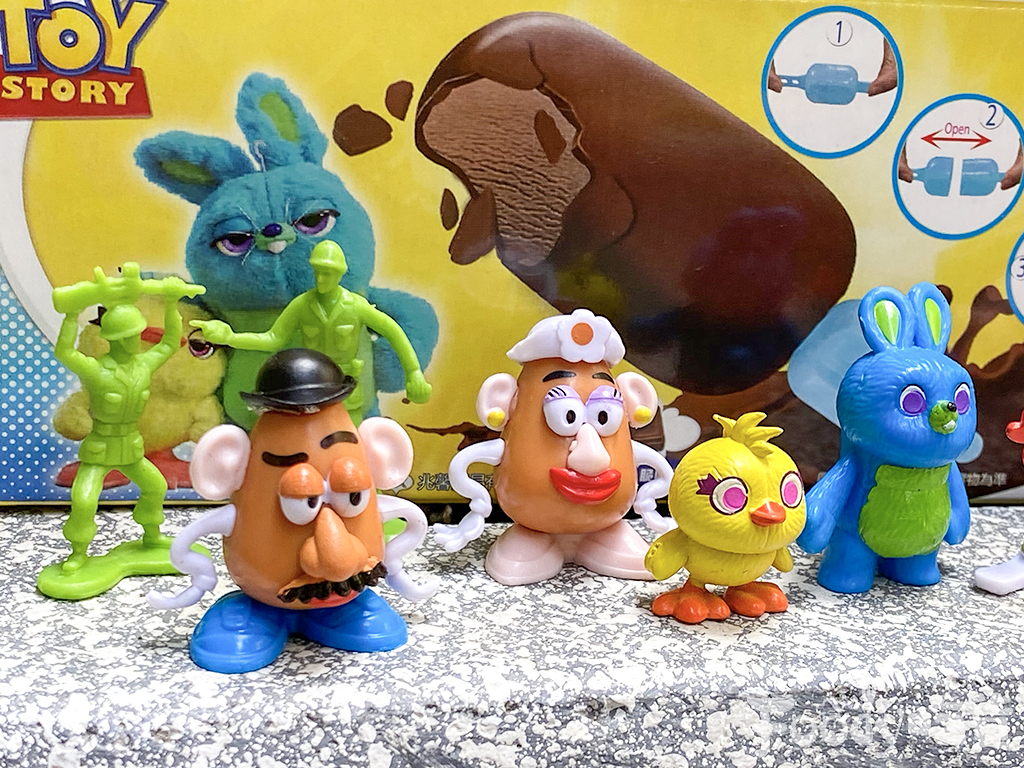 ▼「玩具總動員4+驚喜 巧克力脆皮巧克力雪糕」(售價49元/個),風靡不同年齡層,幫大家找出自我價值的《玩具總動員》,這次由「冰樂趣」結合雪糕推出共有12款由迪士尼授權的《玩具總動員4》的人物公仔,包含巴斯光年、蛋頭先生、蛋頭太太、鴨霸、兔崽子、胡迪、抱抱龍、翠絲、叉奇、火腿豬、三眼怪、綠色小兵 。其中叉奇、鴨霸、兔崽子三款最新角色也出現在這次的脆皮巧克力雪糕裡!