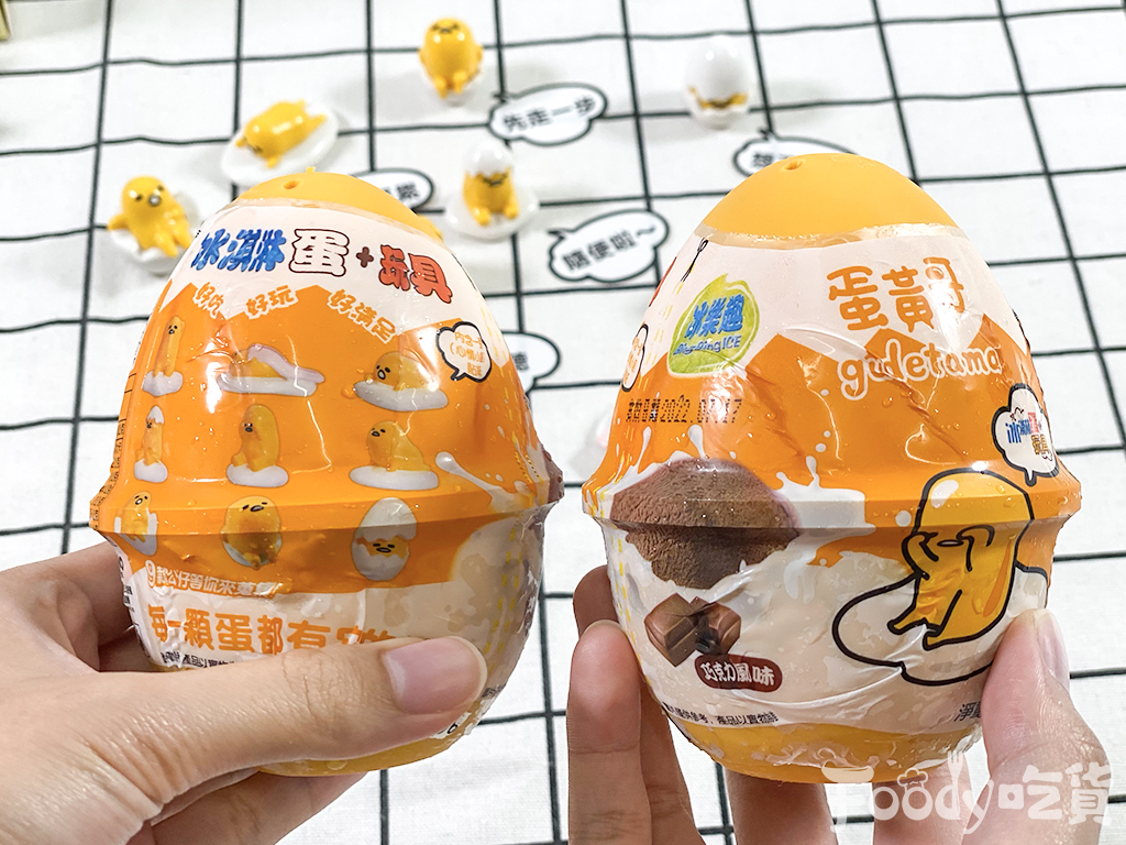 ▼「蛋黃哥+冰淇淋蛋 香草練乳口味」(售價49元/個)冰淇淋蛋內上蓋隱藏了一系列的蛋黃哥公仔,共有9款不同的表情、動作、心情的蛋黃哥可供收藏,另外還貼心附上心情小語貼紙,可以貼在蛋殼上,說出你的心情。