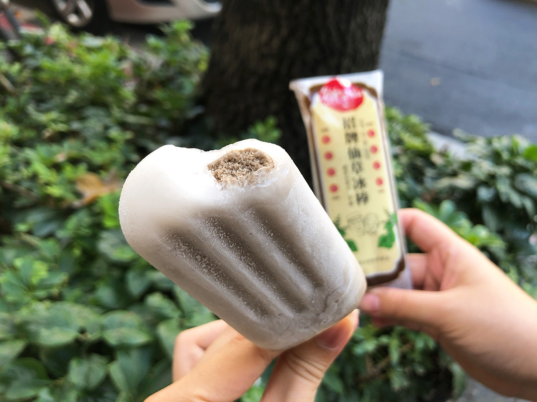 ▼一口咬下可以吃到外頭濃濃的芋頭味以及裡面清甜的仙草冰,有夠清涼解暑!