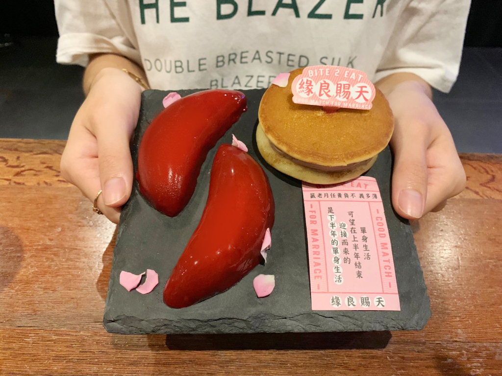 這套餐會不會太可愛了,連筊杯都能做成甜點,單身或情侶都很適合來啊!