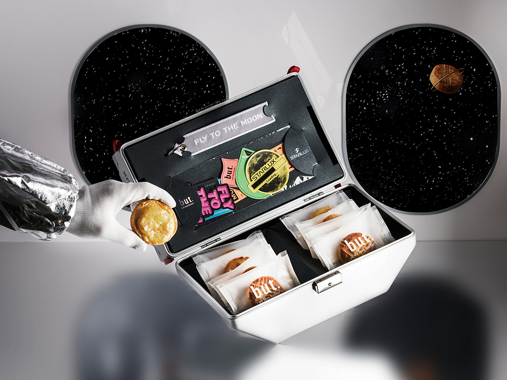 ▼令人驚喜的還有以宇宙旅行為主題,與but.獨家共同創作六款登陸紀念貼紙,可自由裝飾及黏貼於外箱,成為獨一無二的回憶。除此之外,更加碼登月紀念限定色 #奔月銀飛行飄帶,此款飄帶一面為「STARLUX」Logo,一面文字為「FLY TO THE MOON」,今年中秋就讓星宇航空與你一起私奔到月球吧!