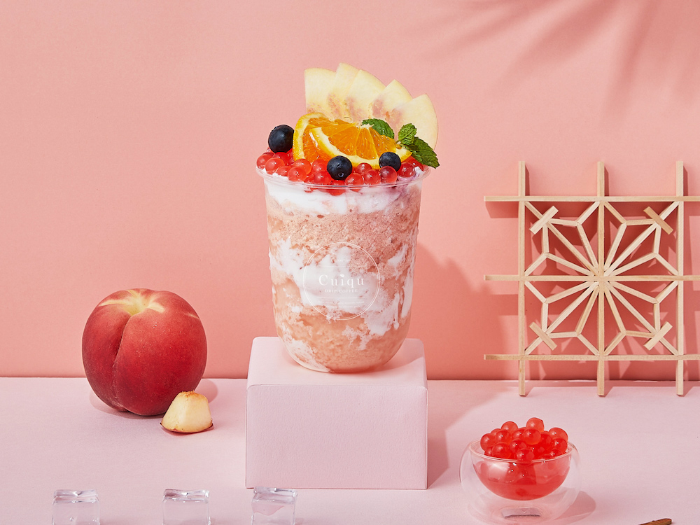 ▼另一款「夏日蜜室脫桃」以香甜水蜜桃製成沁涼冰沙,綴飾肥嫩多汁的水蜜桃果肉,造型粉嫩唯美,快把握最後機會,來奎克消暑一夏!