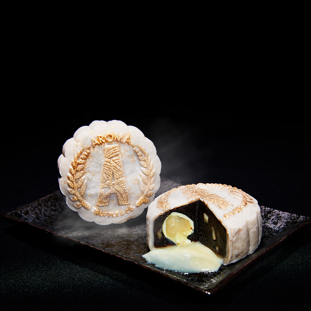▼當餐桌上的鑽石-黑松露遇上「頂級貓山王榴槤」,或是富層次口感的「熔岩白巧克力」,醇厚風味口齒留香!「黑松露貓山王榴槤冰皮月餅」100%嚴選出產於馬來西亞彭亨州的貓山王榴槤肉,與黑色義大利松露蹦出濃郁新意,用手工竹炭冰皮將所有風味包裹,最後撒上可食用的金箔,醇厚的松露與榴槤香餘韻在舌尖與口中慢慢散開。