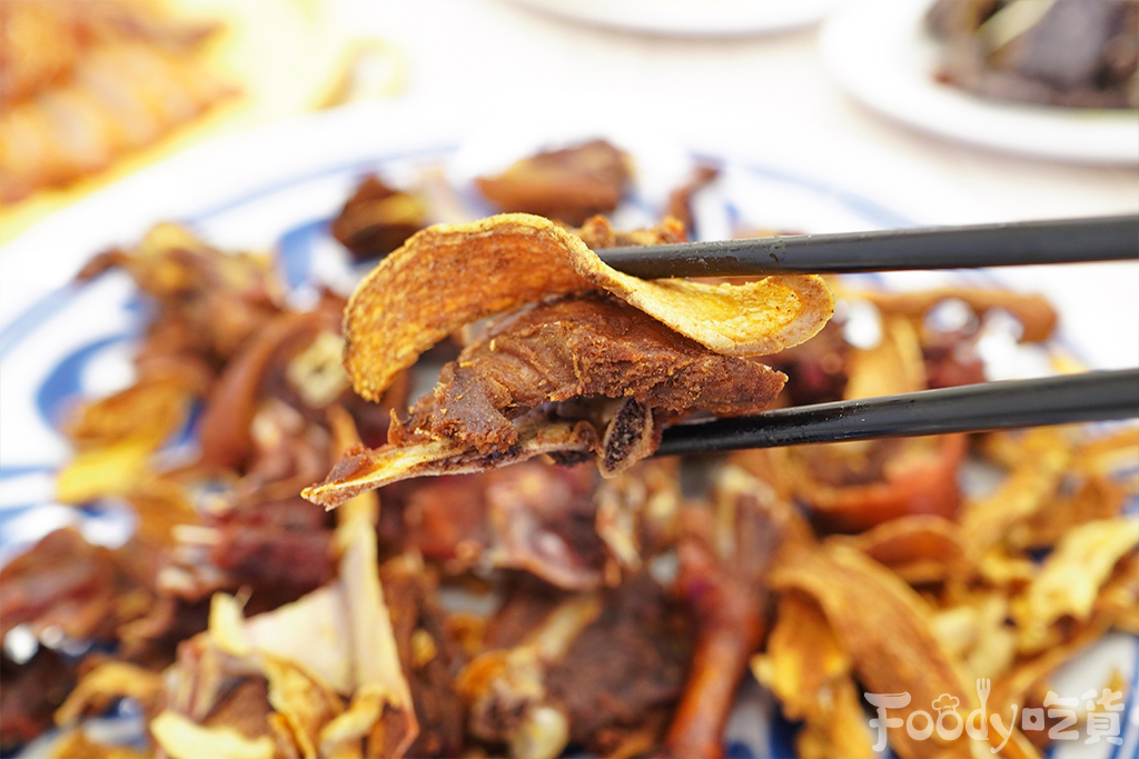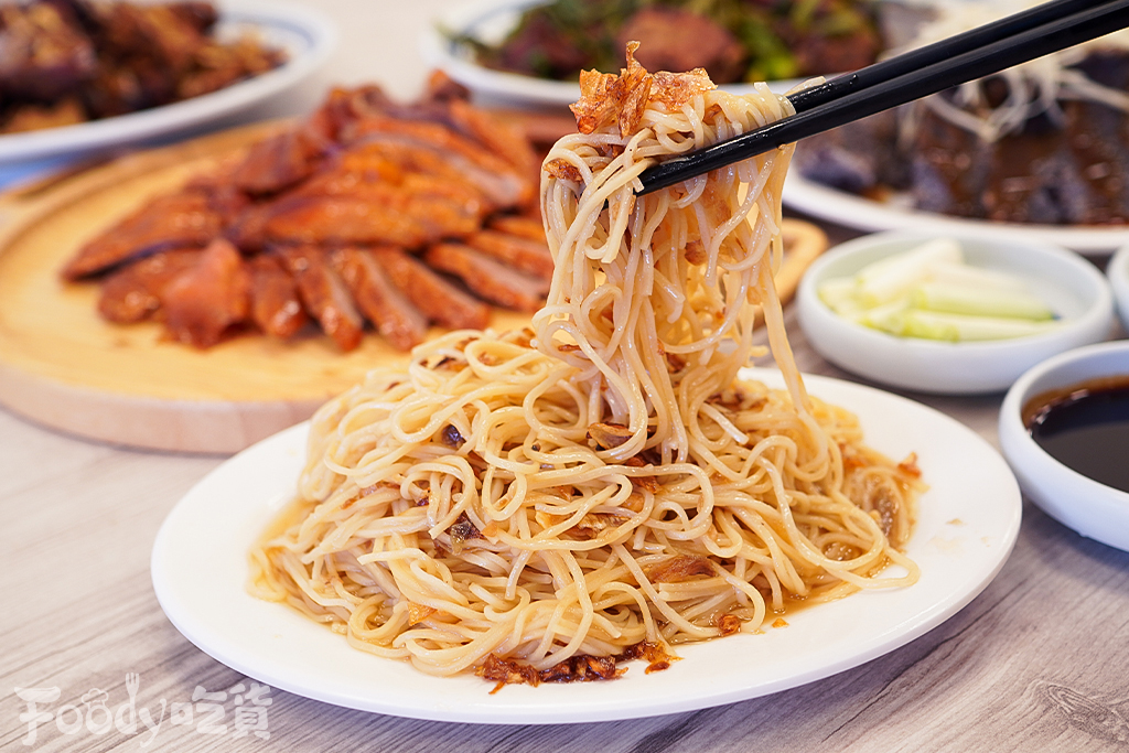 ▼第三吃除了可以做成鹹菜鴨湯,也可以做成烤鴨店較少見、非常特別的椒鹽鴨架,在油鍋中上色至酥脆無比的鴨骨,肉質乾而不柴、焦中帶香,簡單胡椒鹽調味的鹹香滋味超涮嘴,搭配煸得焦香乾脆的香酥薑片,喜歡小酌乾一杯的人必點!主食鴨油蔥麵線,麵線本身是手工製,比一般麵線更粗一點,淋上特製鴨油蔥,油潤而不膩、香氣十足的天然鴨味鮮甜,忍不住就多吃好幾口。