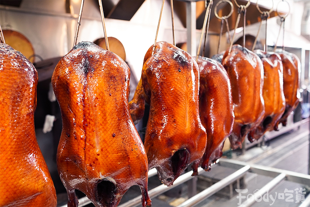 ▼店家的廚房採取半開放式,可以看到師傅掛鴨、片鴨,一整排泛著油光的鴨鴨讓人光用看的就忍不住快流口水。