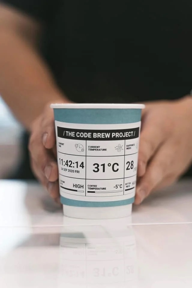 ▼最特別的是,所有數據都會貼在咖啡外帶紙杯上,或是投影在店內的螢幕,讓顧客對當下沖泡咖啡的「最佳比例」一目瞭然。