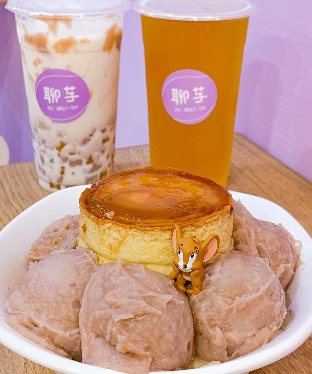 ▼另外他們家的「蛋綿冰」非常特別,冰品本身就是雞蛋布丁的口味,讓你從第一口吃到最後一口,都能吃到香甜迷人的布丁香氣!除了冰品之外,「聊芋」也有販售芋泥鮮奶茶、芋圓奶茶、大甲芋頭奶冰沙等等,對於芋頭控來說,這裡簡直就是他們的天堂呀~~~