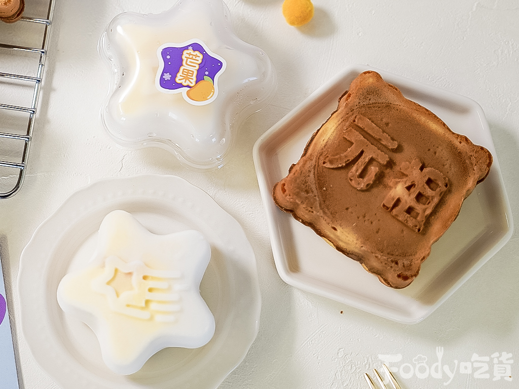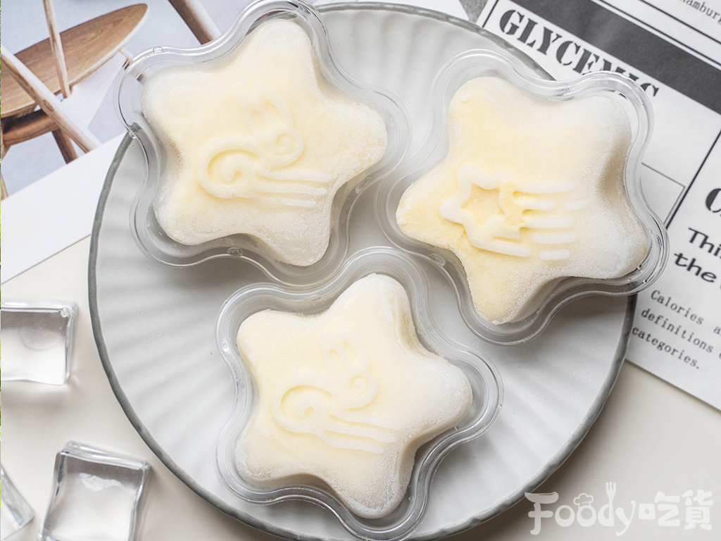 ▼另一款「星空」,光聽名字就超浪漫,每一顆都是潔白星星造型,上面更印著應景的圖案。外皮是滑嫩帶Q彈的葛粉,包裹健康低卡、低脂、低熱量的水果優格冰淇淋,共有奇異果優格、芒果兩種口味,清爽酸甜果香讓人好喜翻~