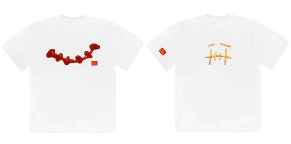 ▼這次跟饒舌歌手Travis Scott合作少不了得注入潮流元素,令人意想不到的是素面白T印上麥當勞logo和薯條、蕃茄醬圖案,看起來不但毫無違和感,還非常時尚!