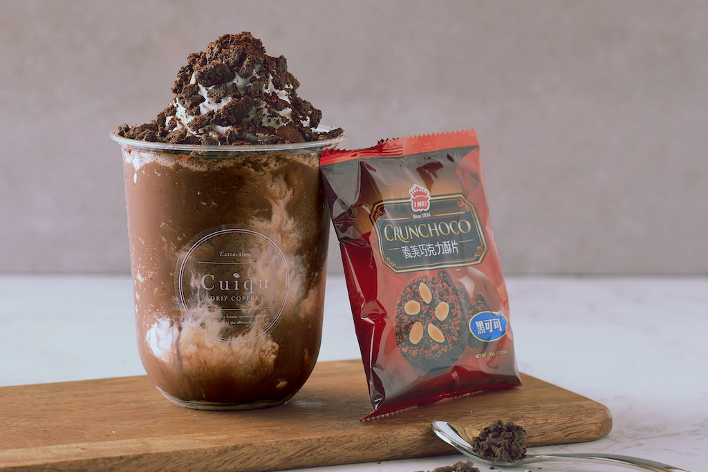 2020年09月14日巧克力控、冰沙控們準備大口喝!精品咖啡品牌「Cuiqu奎克咖啡」繼上次推出金黃芒果冰沙、粉嫩水蜜桃冰沙之後,這次推出整杯滿滿巧克力的「黑可可巧克力酥片」,特別在杯中加入國民零食「義美巧克力酥片」,熟悉的巧克力酥片搭配奎克咖啡巧克力冰沙,每口都能喝到濃郁巧克力迷人風味!」