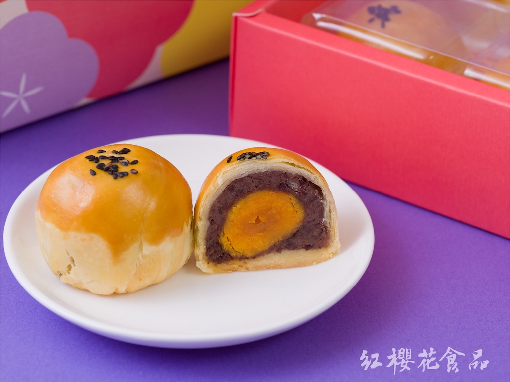 ▼其實紅櫻花的熟蛋黃酥是使用嚴選國產大鴨蛋,大顆飽滿的蛋黃用傳統「紅土秘製工法」醃製30天,充分去除腥味、增添蛋香氣,烤完後的熟鹹蛋黃鹹香無比,再塗抹紅櫻花秘方,最後就成為熟蛋黃酥最濃郁的香氣來源。