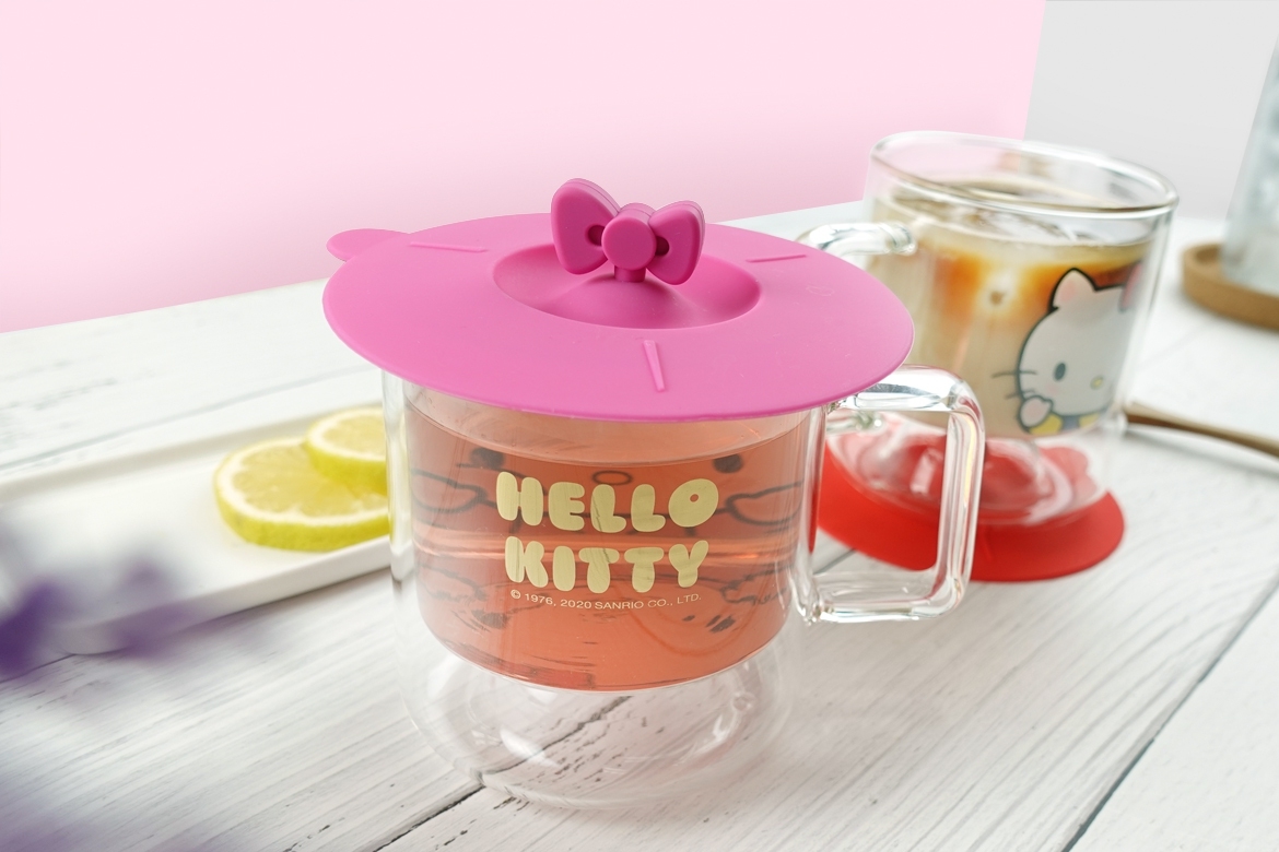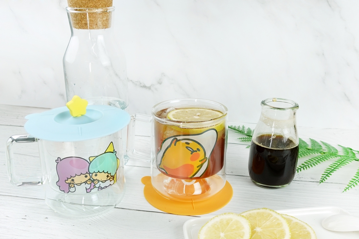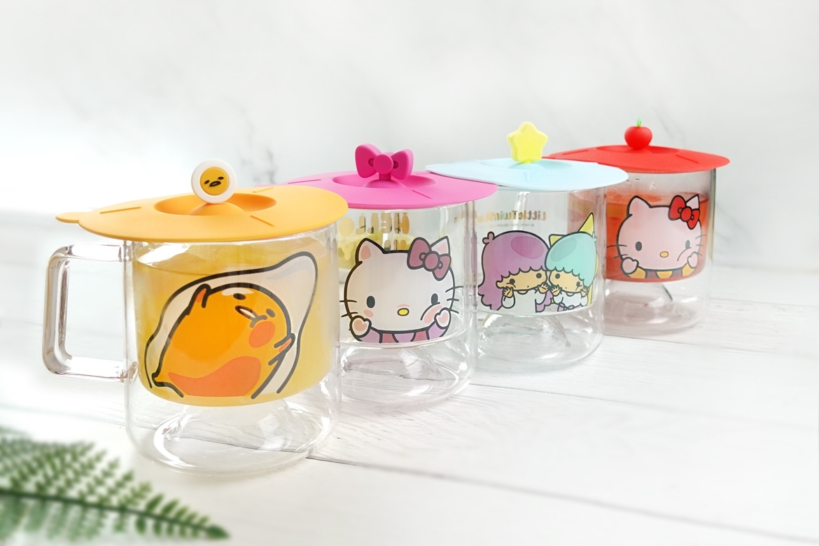 ▼另外,食品級矽膠可當杯蓋防塵防溢、溫悶飲品,放在辦公桌上做為杯墊時可經由透視槽看到造型小飾品,上班的心情都跟著變成粉紅色了~「三麗鷗雙層玻璃杯組」共推出了 HELLO KITTY 粉色款&紅色款、雙子星、蛋黃哥四種款式,每一款都非常必收!