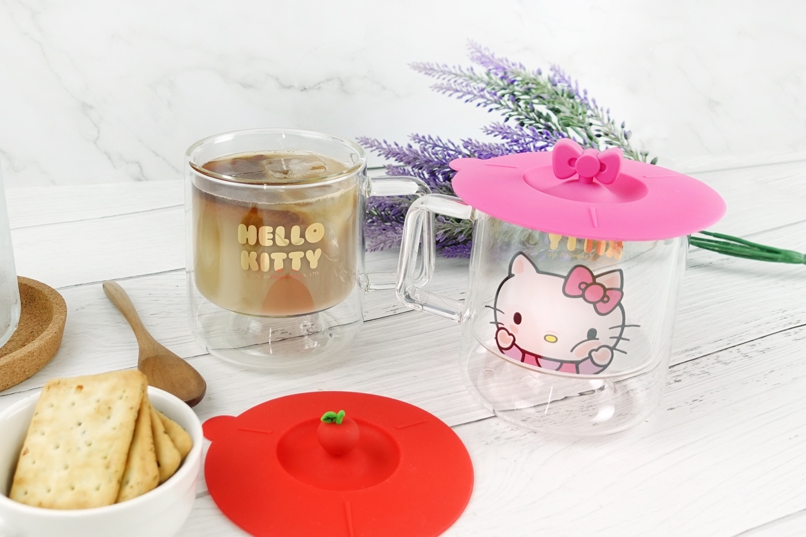 ▼而「三麗鷗雙層玻璃杯組」的外型圓潤好握持,杯身整體作工精細、杯口無瑕、圓潤光滑,搭配立體造型兩用杯蓋和杯墊,可愛度超級高!