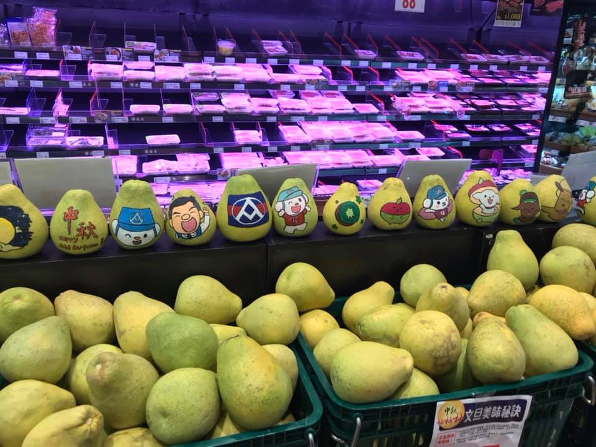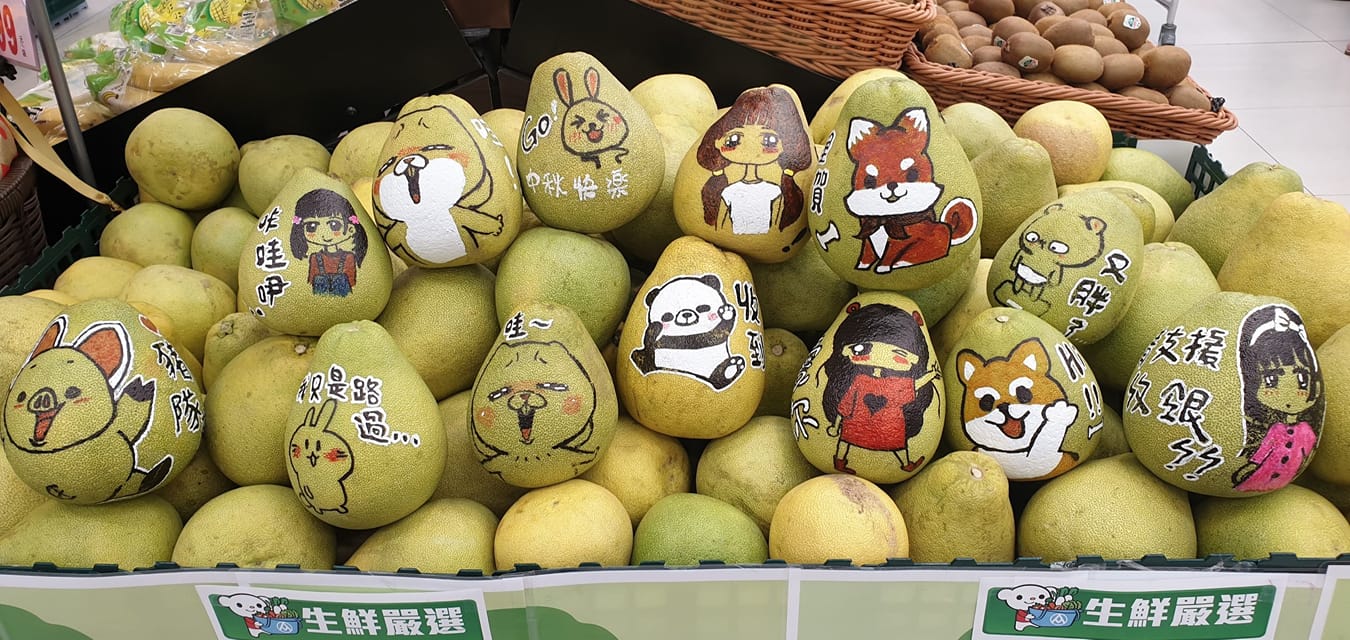 2020年09月24日中秋節快到了,不只有人已經提早開始聚會烤肉,各大賣場也開始賣起月餅、柚子等中秋必備品。有網友走進全聯採買中秋商品時,就發現了一盤超美的彩繪柚子,網友們全都驚訝於員工的藝術天份,更紛紛貼出自家附近全聯「被支援收銀耽誤的畫家們」的作品。