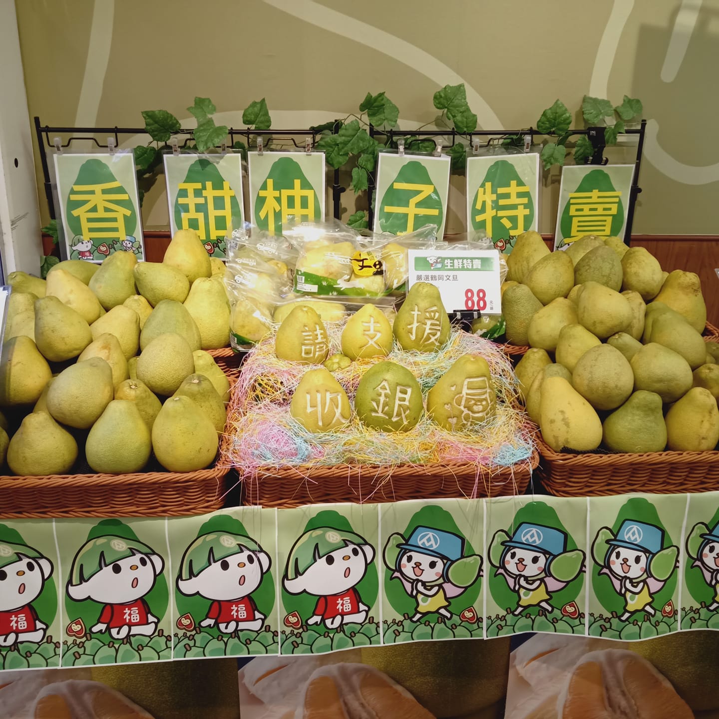 這些柚子實在都好可愛,全聯員工都得要十八般武藝樣樣精通,大家快到你家附近的全聯看看,說不定也會有驚喜喔!