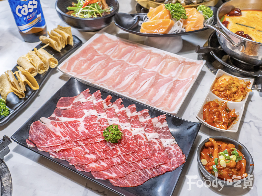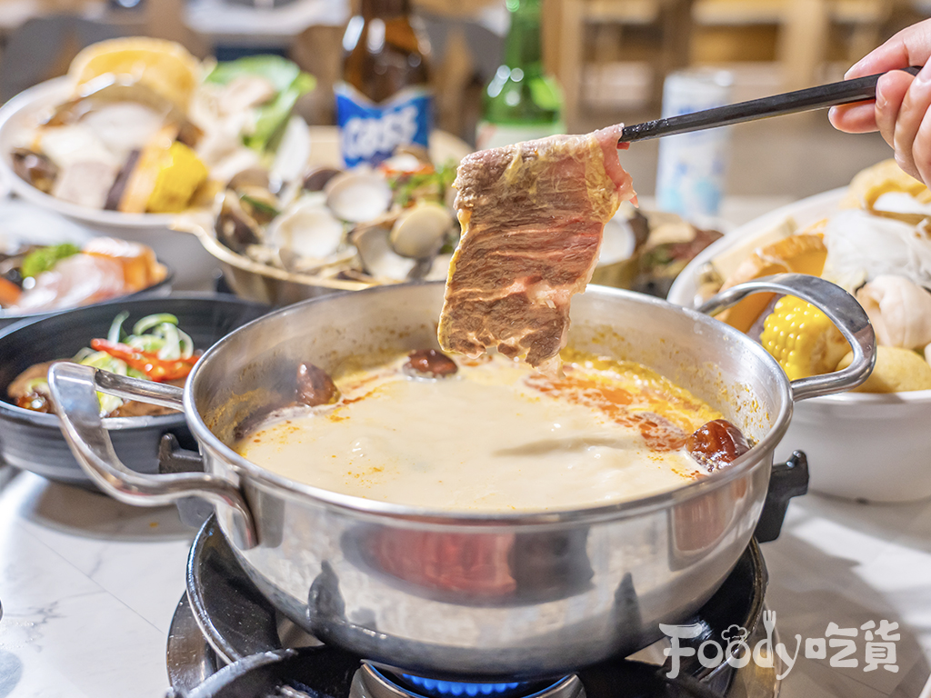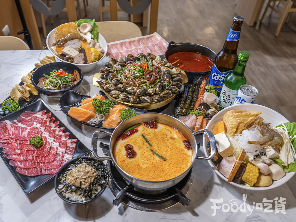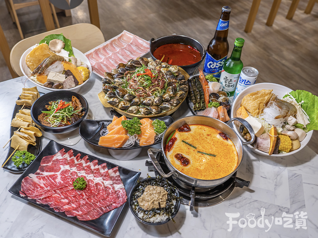 ▼店內主推韓式鍋物與銅盤烤肉,鍋物光是湯底就有七種口味可以選擇,其中最特別的就是「人氣麻奶湯底」(加價 NT$ 60),牛奶湯底加上店家特製的麻辣醬,濃郁奶香中帶有微微椒麻香氣,對於想要嘗試辣味韓食,但是怕吃辣的人來說,辣度剛剛好!另外還有小編大推的「韓國辣椒醬湯」(加價 NT$ 60),油炒韓國進口辣椒醬之後,再倒入高湯、蒜頭、韓國醬油等等調味,香麻帶勁的麻辣湯底,一端上桌就能聞到嗆鼻的辣椒香氣,不管是涮肉還是涮海鮮都很夠味!