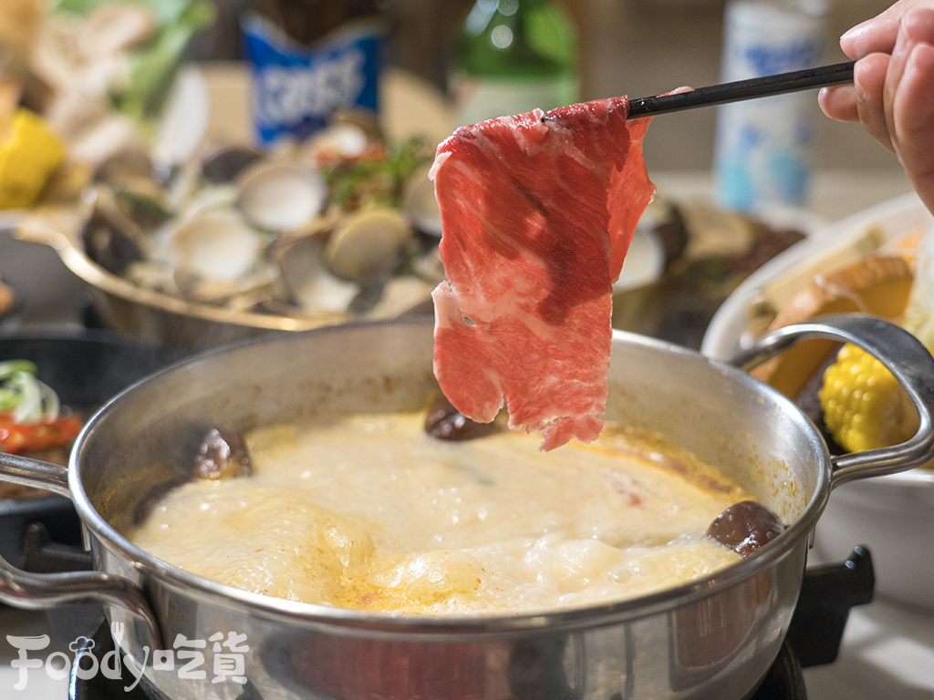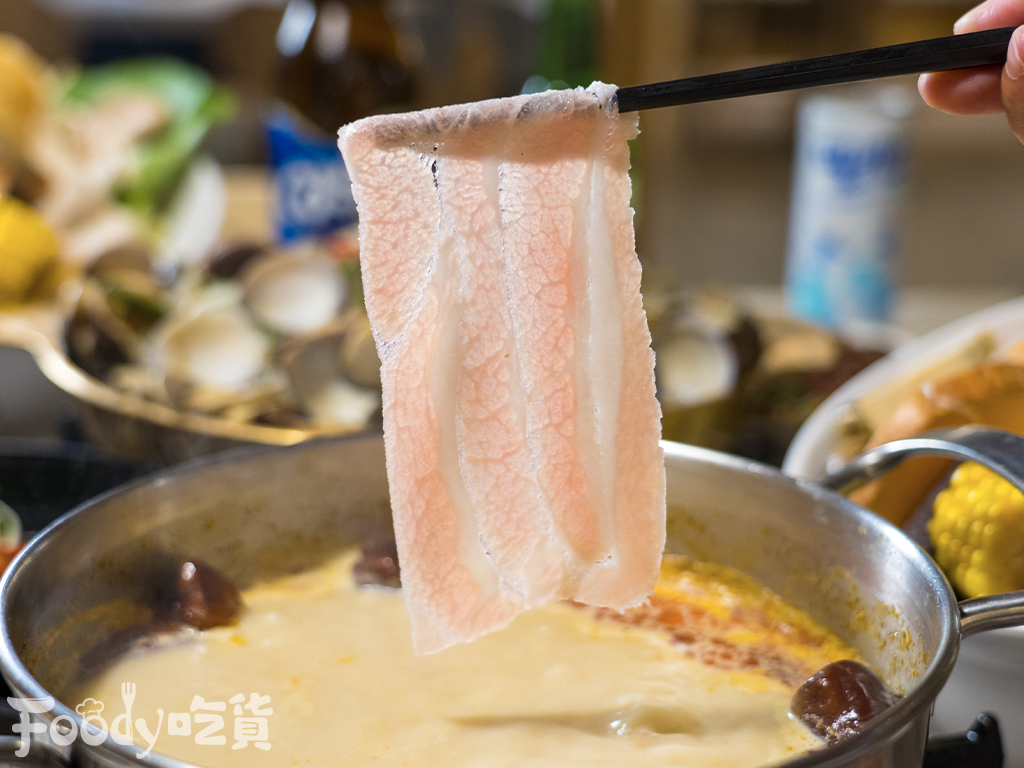 ▼提到火鍋,當然少不高級的肉片啦!最高等級「Prime霜降牛」油花分布非常均勻,只要涮大約4-5秒即可,霜降牛肉質鮮嫩美味,這麼高級的Prime霜降牛居然只要368元就能吃到,CP值高到驚人!另外還有油脂豐富不膩口的「松阪豬」(單點 NT$ 190),軟嫩無比的肉質入口即化,沾附湯汁的肉片,不需要沾醬也很夠味!