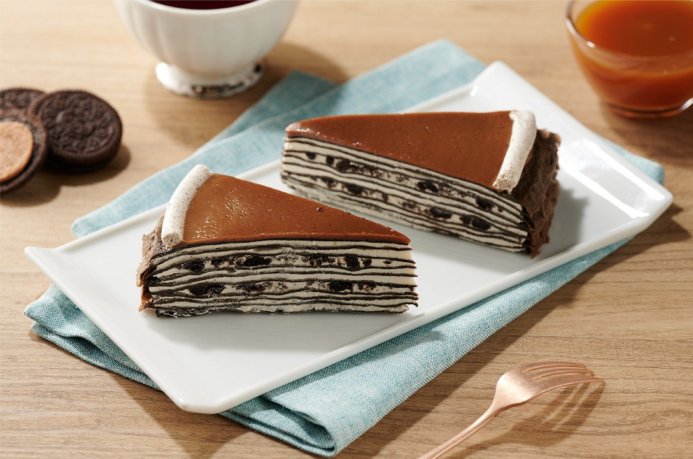 ▼「焦糖海鹽千層」軟嫩的巧克力千層餅皮,搭配焦糖海鹽鮮奶油與雙層OREO巧克力餅乾內餡,淋上焦糖海鹽巧克力醬,多層次讓人忍不住愛上。