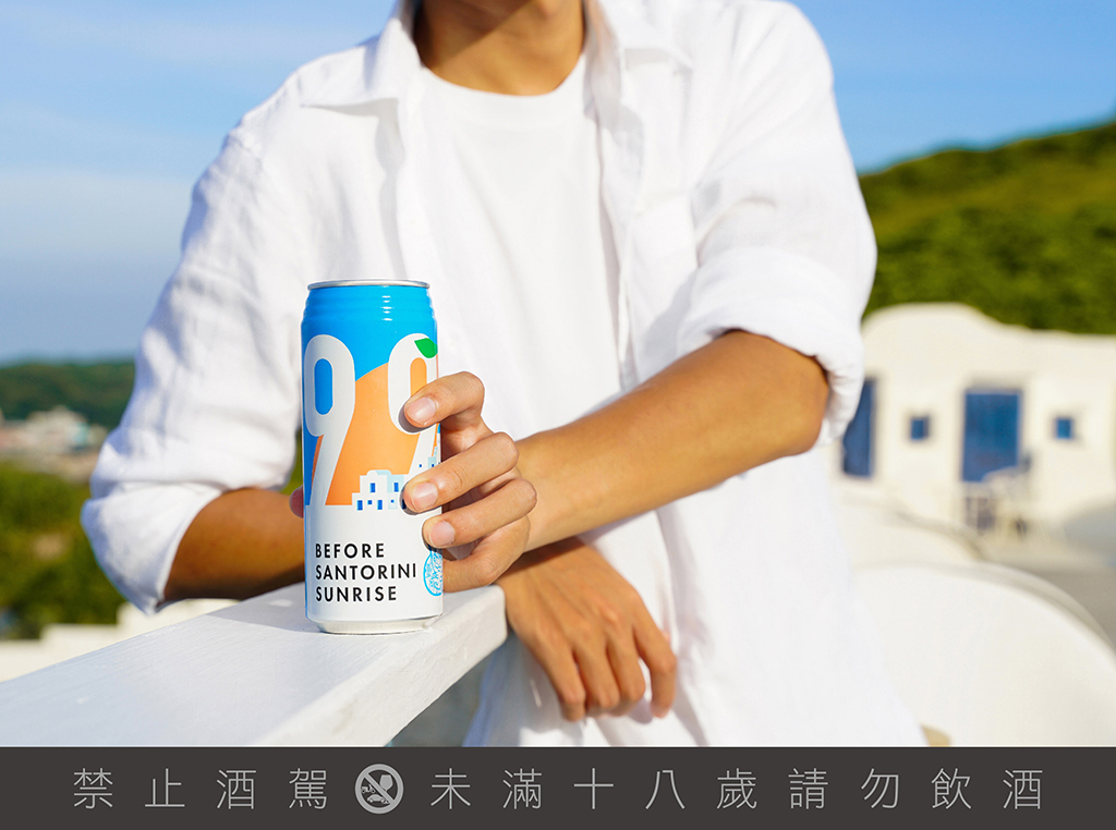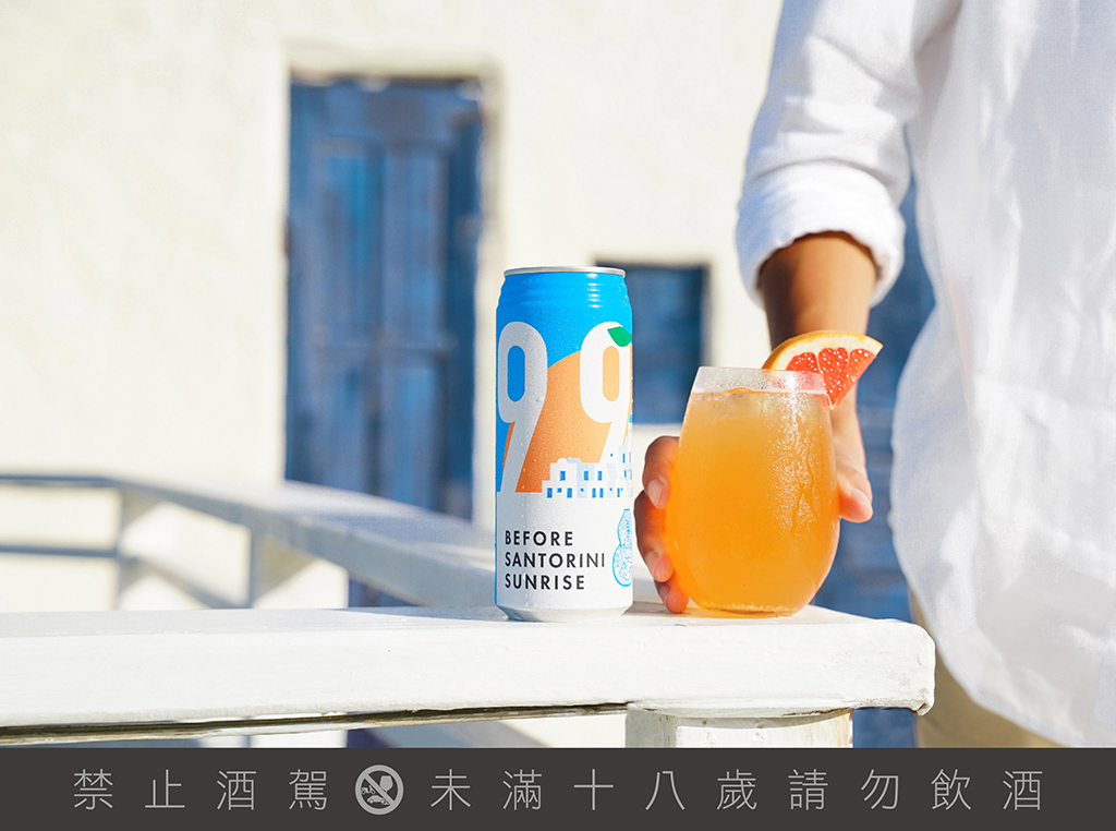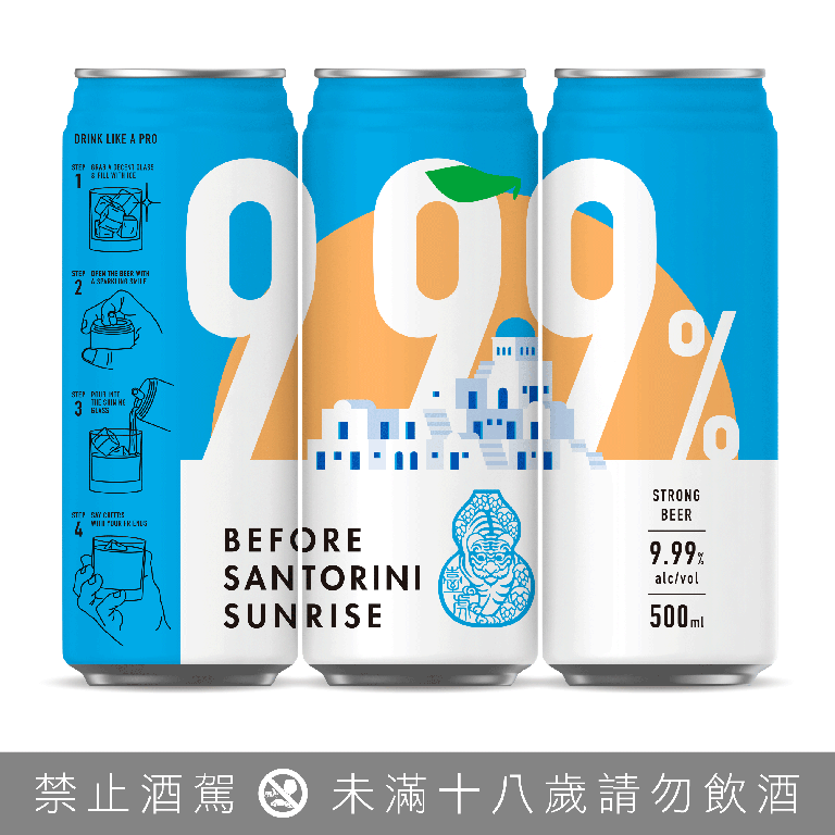 ▼臺虎精釀第六款9.99調啤系啤酒,發想自充滿異國情調的經典調酒「聖多里尼的日出 Santorini's Sunrise」,並以酒款名稱致敬25年的愛情經典名片《愛在黎明破曉時 Before Sunrise》,酒標設計則採用地中海式的建築做為主體,搭配後方的巨大葡萄柚,以及象徵愛琴海的湛藍底色,營造晨曦般的浪漫氛圍。