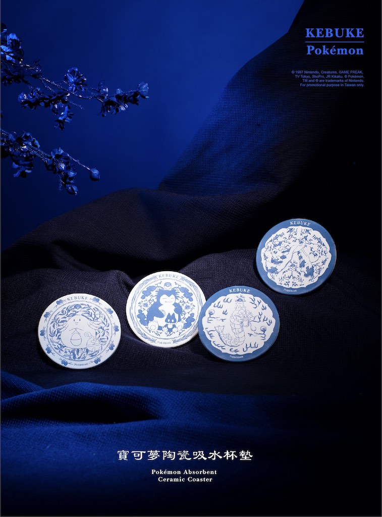 ▼「寶可夢午茶點心組」則以滾滾蝙蝠、四季鹿、傑尼龜為主題,象徵「福祿壽三星共照」的祝福。4款「寶可夢陶瓷吸水杯墊」則分別以卡比獸、暴鯉龍、吉利蛋、火焰鳥為主角,各別代表山珍海味、祥龍獻瑞、大吉大利、鳳凰來儀之含義。另有手搖飲必備的「寶可夢環保提袋」,同樣也有4種款式,以經典角色搭配常見於青花瓷瓶器上的花紋纏枝傳達寓意,皮卡丘藍底芙蓉紋、喵喵藍底梅花紋、耿鬼藍底蘭花紋、可達鴨藍底水仙紋,分別象徵大放異彩、堅韌不拔、空谷幽蘭、清雅脫俗之意。