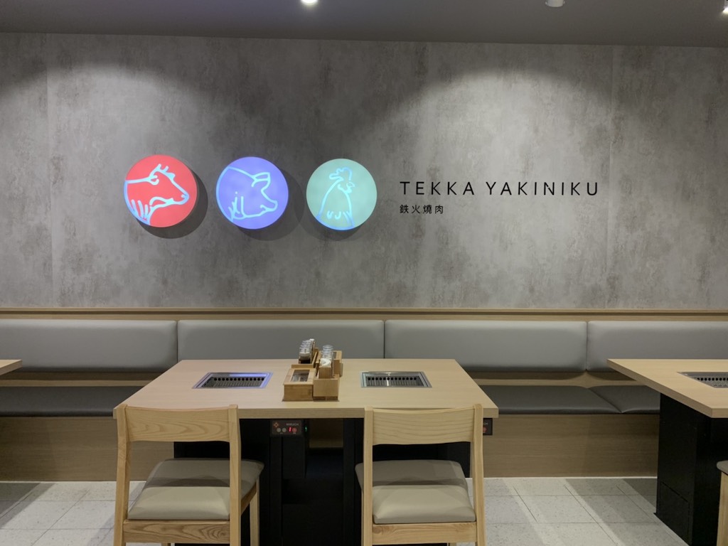 ▼『鉄火燒肉微風台北車站店』締造日式極簡風格空間,內部採用清水模質感牆面,搭配淺色木質桌椅與窗框,清新舒適。線條簡潔的牛型投射燈,投影在釉面方格磚,讓環境增添新鮮感,整體設計呈現日式簡約風格,讓消費者暫時超脫都會忙碌步調,在日系小清新中享用美味燒肉。
