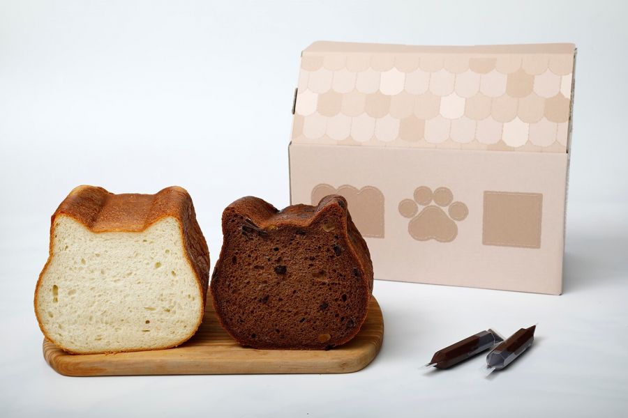 內容物:兩條吐司、兩支巧克力筆、貓房子