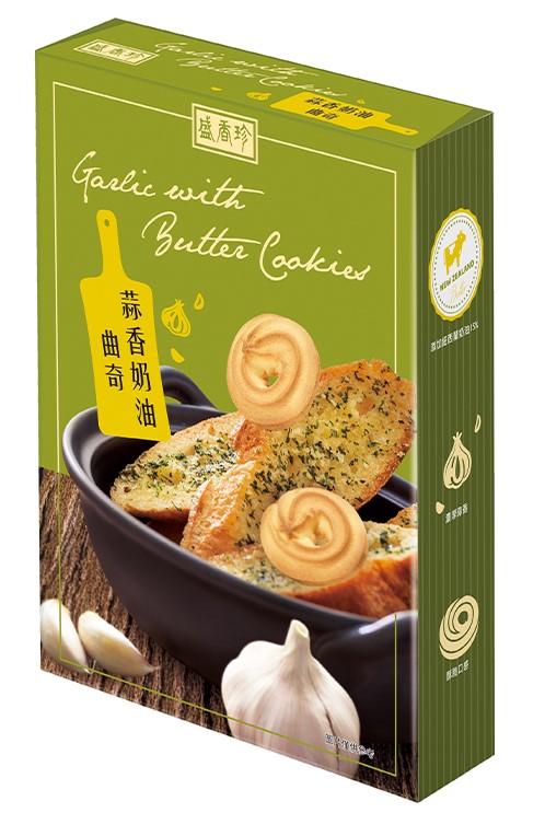 ▼「盛香珍蒜香奶油曲奇」添加15%紐西蘭奶油,奶香濃厚,且包含了濃濃的大蒜蒜香,內含14小包,方便分享食用。