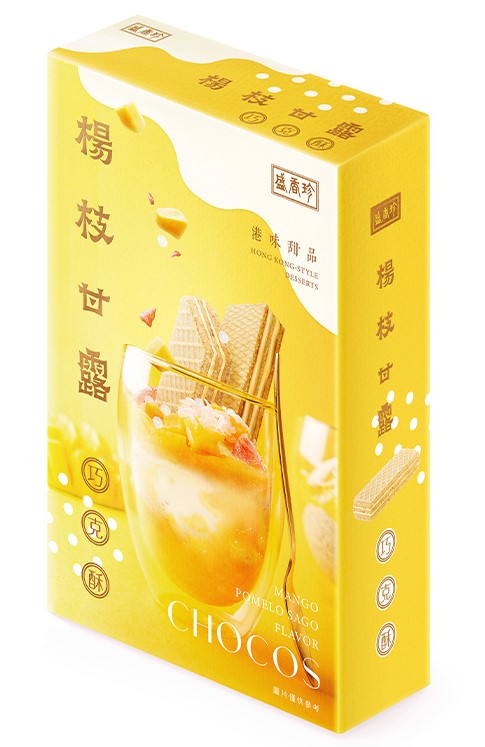 ▼最後要介紹的就是這款「盛香珍楊枝甘露巧克酥」,以港式知名甜點楊枝甘露化身成夾心酥,還原正宗楊枝甘露風味(芒果、白柚香),內餡使用代可可脂白巧克力50%,共12片餅乾。