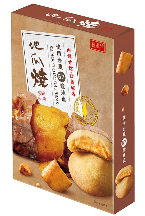 ▼「盛香珍地瓜燒夾心曲奇」使用台農57號地瓜與紐西蘭奶油及白巧克力,一入口內餡甘甜,共8小包,方便食用