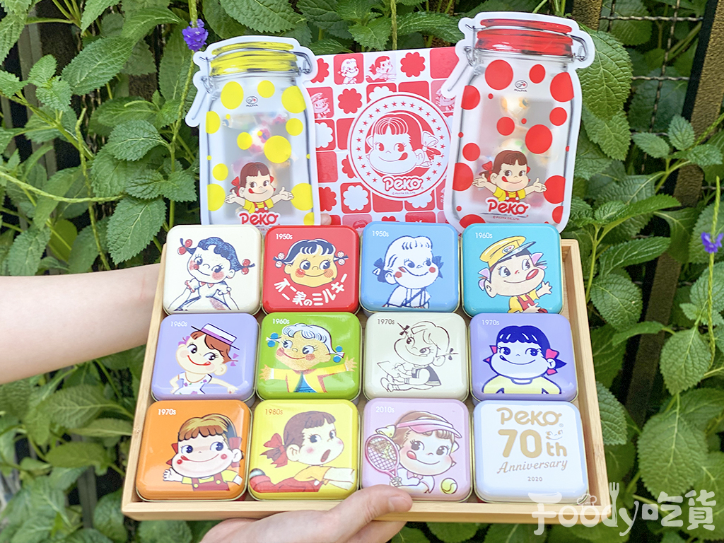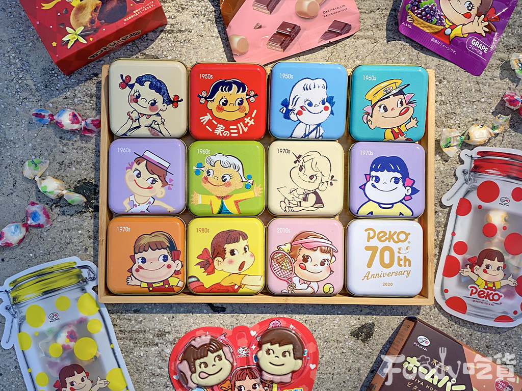 ▼「不二家Peko70週年牛奶糖小方罐」(售價59元),便利商店獨家限量上市,Peko70週年經典牛奶糖小方罐,共12款,復古新設計,具收藏價值及收納小物功能,Peko不二家經典牛奶糖,濃郁奶香超療癒~