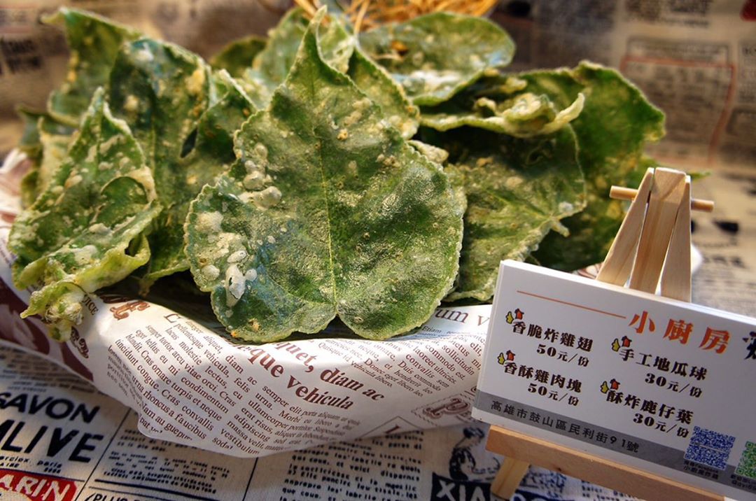 【高雄】樹葉居然可以吃! 人氣攤車必吃「酥炸鹿仔葉」 剛起鍋樹葉口感「嘎嘣脆」!