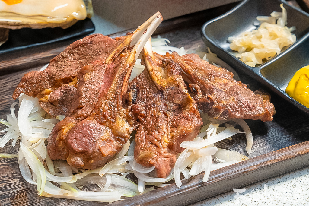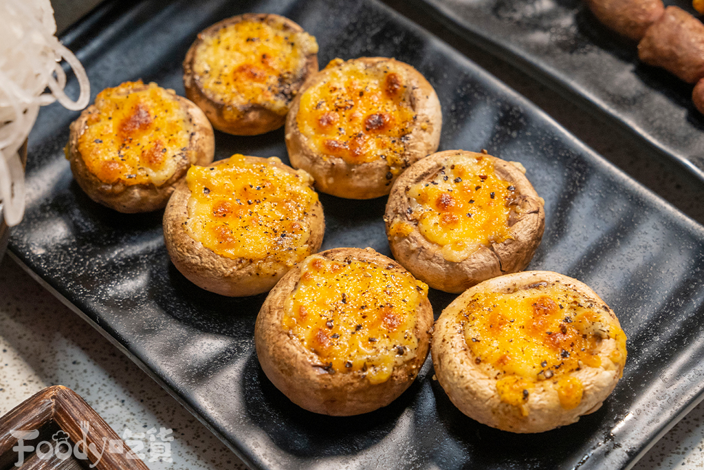 ▼海味滿足了,也要來點山珍:新疆孜然羊肉烤得軟嫩多汁,羊肉獨有的鮮甜香味佈滿每一吋味蕾超滿足;充滿起司香的焗烤蘑菇,新鮮蘑菇的香甜超解膩,搭配起司濃郁口感最對味!