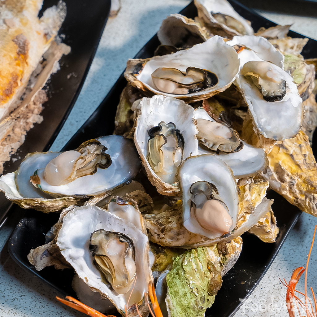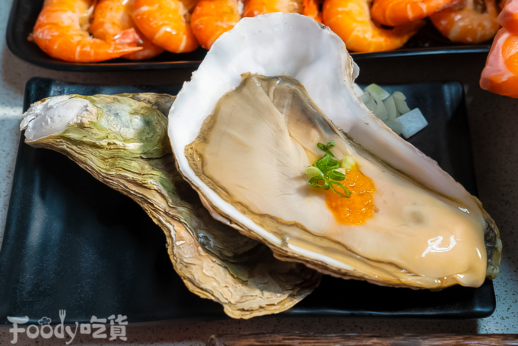 ▼生魚片吃爽了,也一定要吃一下燒烤店人氣最高的鮮蚵:原本199鮮蚵吃到飽的活動,在生魚片上市後就改回招牌「一顆5元」,就算沒有吃到飽、這價格也是有夠狂;另外必嚐鮮新品「美國大生蠔」,看看這肥嫩欲滴的水嫩模樣超咕溜,吃下去濃郁海味在嘴裡擴散,實在太幸福~