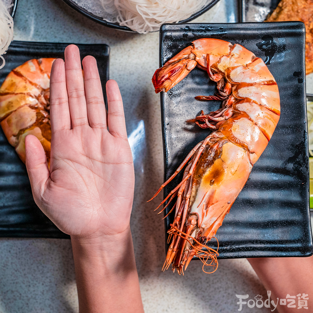 ▼另外,還有各大網紅必拍的「手臂蝦」,蝦如其名跟手的大小有得一拚,這隻Q彈新鮮的蝦肉整尾吃下去、再多點幾盤鹹香涮嘴的泰國蝦來尬,蝦蝦控直接爽到升天~