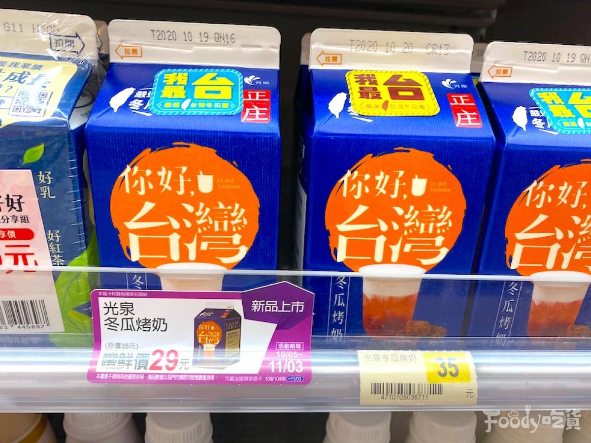 ▼光泉默默在超商上架這款新品,「冬瓜烤奶」外包裝「你好台灣」結合台灣復古意象,配色也跟秋天非常搭,下方更標榜添加光泉鮮奶,飲料控看了當然必須買來嘗鮮!