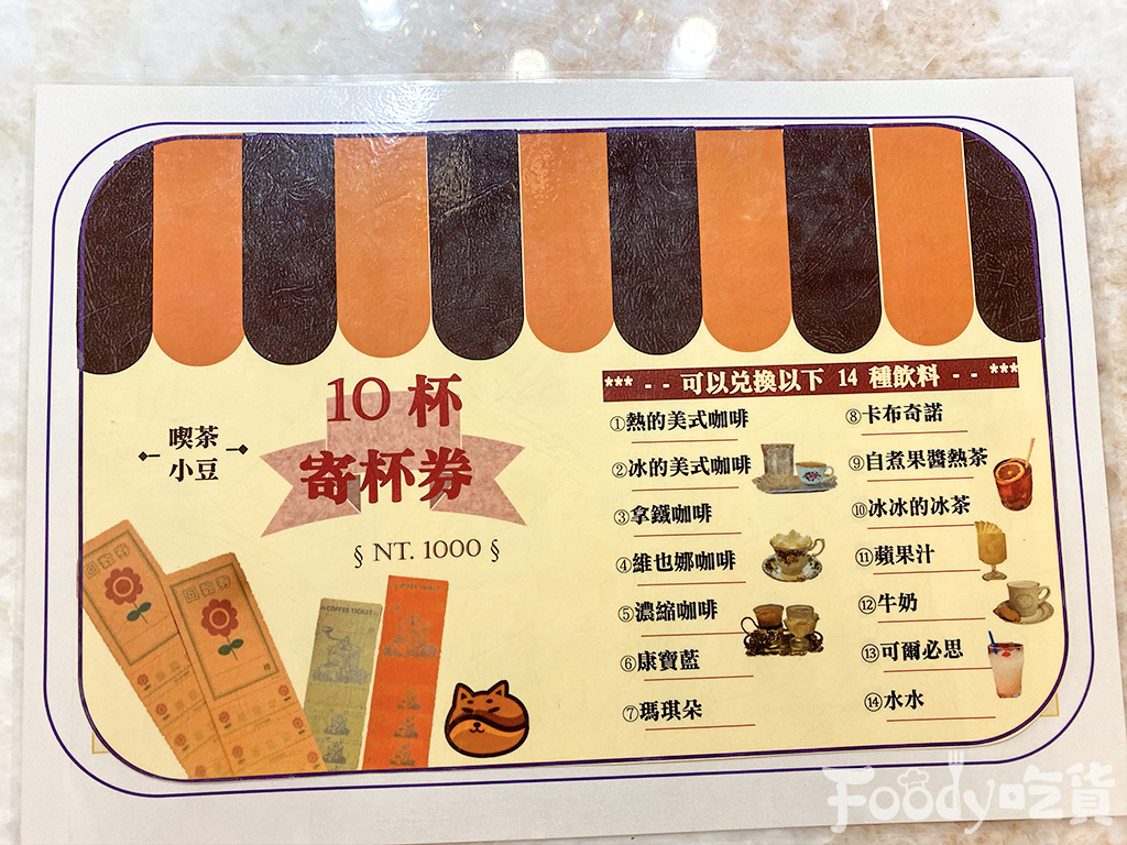 ▼喫茶小豆還有提供「飲品10寄杯回數券」,只要來店內購買一張,就可以兌換以下14款任一飲品,每張回數券售價1000元,共有三種造型任你選,小資族想省錢買咖啡、飲料,這個寄杯回數券你一定要先買起來呀!