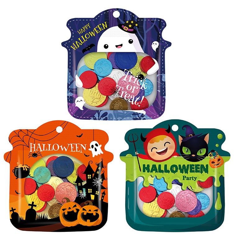▼「萬聖節金幣牛奶巧克力」(NT$ 69)便利商店通路獨家上市,義大利巧克力Sorini,充滿趣味的卡通骷髏、眼球、尖牙巧克力球,造型很有萬聖節奇趣風格!「Sorini萬聖牛奶夾心巧克力(網袋)」(NT$ 69)義大利巧克力Sorini,充滿趣味的卡通骷髏、眼球、尖牙巧克力球,萬聖必備造型糖果!