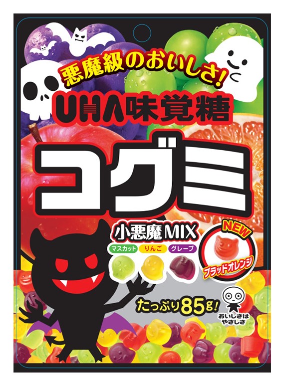 ▼「味覺糖QQ軟糖萬聖節限定品」(NT$ 69),日本進口,7-ELEVEN獨家販售,味覺糖QQ軟糖萬聖節限定款,共有四款造型以及蘋果、葡萄、白葡萄、柳橙四種口味,當作萬聖節派對甜點超適合!