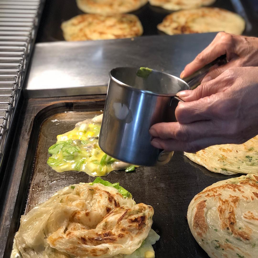 ▼人氣店家「天香抓餅」選用純手工自製的麵團發酵製作餅皮,老闆將麵團放在熱騰騰的煎台上煎一煎,蓬鬆又酥軟的抓餅就出爐啦,就算是原味口感也相當有層次,讓人忍不住一口接一口!