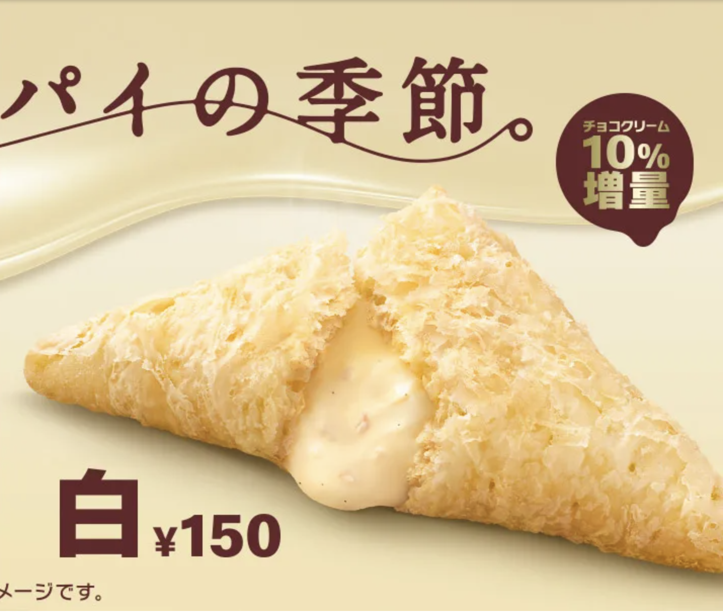 ▼另一款口味則是「白三角巧克力派」,以白巧克力奶油搭配杏仁顆粒,每一口都是幸福滋味!而日本麥當勞今年也承諾會將巧克力奶油增量10%,巧克力控們絕對會愛上!